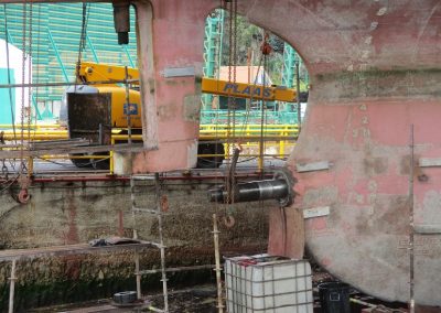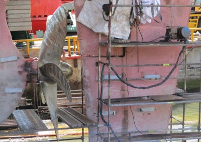 104 mts LOA Cargo Vessel “HR Pearl” Repairs and maintenance Dry docking for repair and maintenance works Cleaning of tanks, steel works, crane repair, pipes repair and renewal, electrical works, dismantle and installation rudder, fabricate new bush, check tail shaft wear down, dismantle, installation and adjusting propeller.