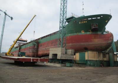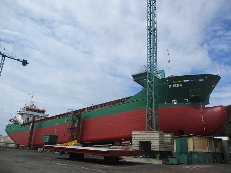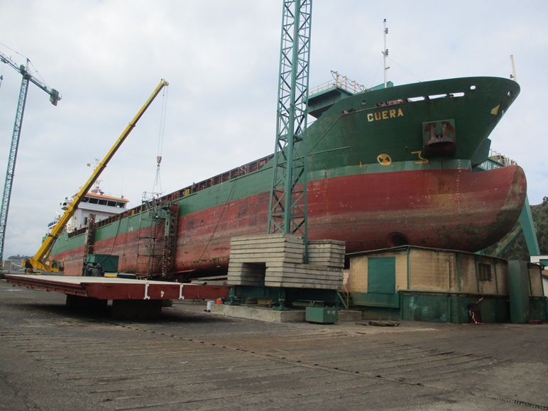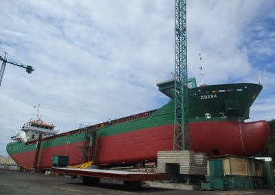 Washing, sand-blasting, painting, change cathodic protection, check valves, check shaft line and rudder, propeller polishing, change pipes and overhaul valves, overhaul main machinery and pumps, electric works, renew steel, repair and change rubber cargo hatches, etc.