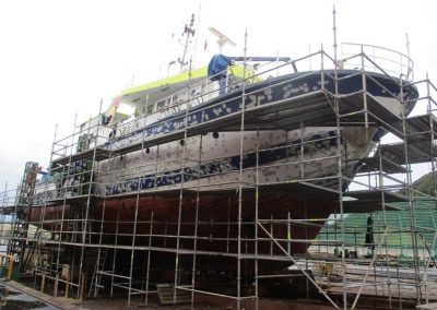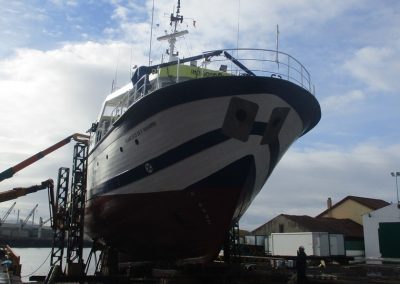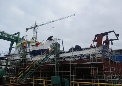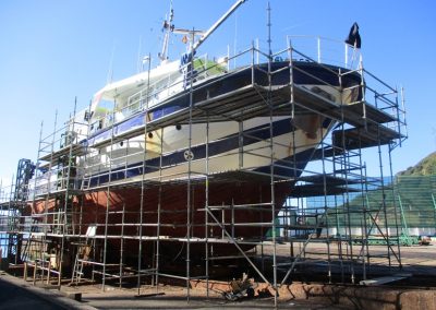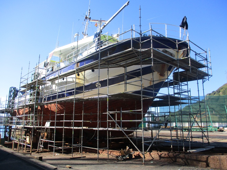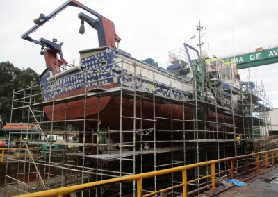 Lavado, cambio madera en diferentes áreas, pintado, cambio ánodos, revisión completa válvulas, limpieza anclas y cadenas, desinstalar la línea de ejes y hélice, y después revisión volver a instalar, limpieza y pulido hélice, revisar holguras timón, trabajos hidráulicos y en tuberías, revisión completa motor principal y motores auxiliares, revisión completa otros equipamientos, trabajos eléctricos, revisión equipamiento de seguridad a bordo, revisión equipos electrónicos, trabajos en acomodación.