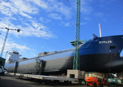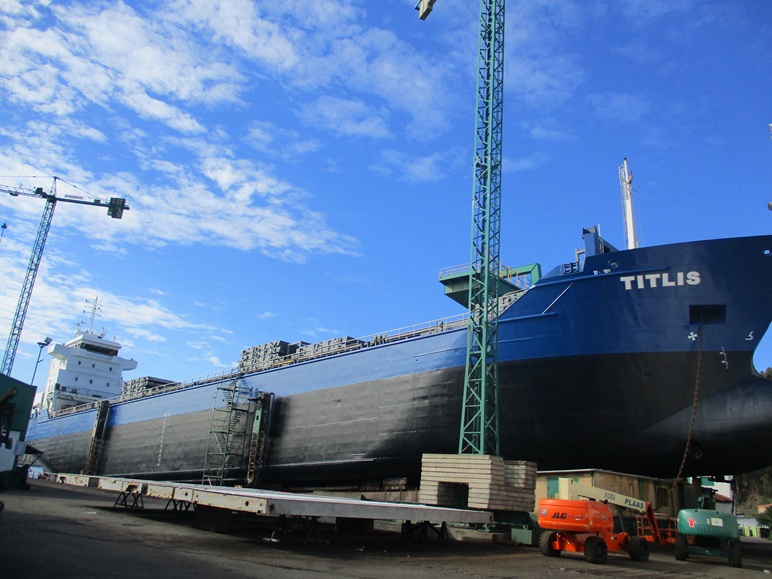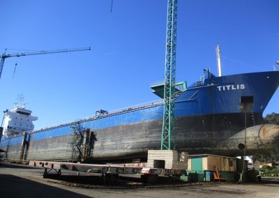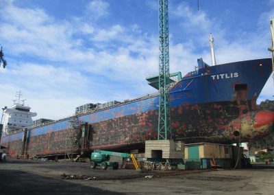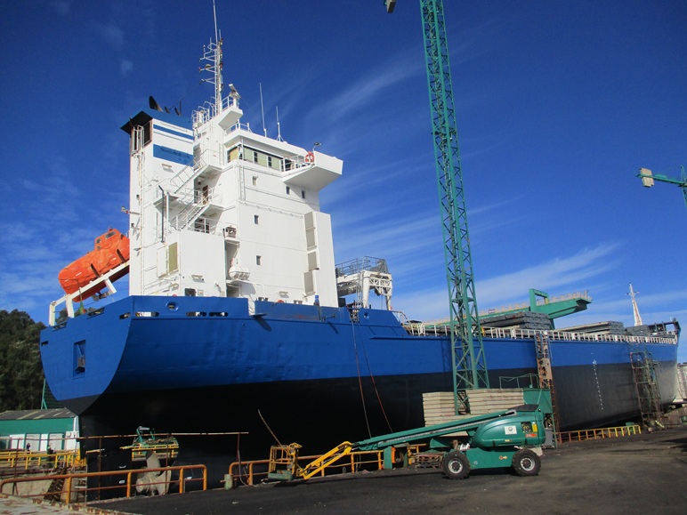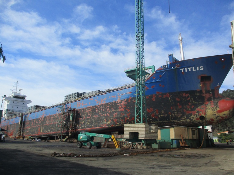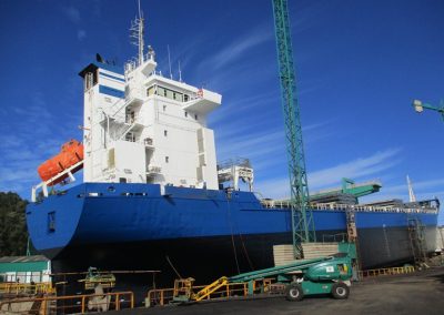 Lavado, chorreado, pintado, cambio de protección catódica, revisión válvulas, revisión línea de ejes y timón, pulido hélice, reparar y cambiar tuberías, revisión maquinaria principal y bombas, trabajos de electricidad, reparar tapas de escotilla y cambiar goma, reparar molinete de anclas, trabajos de acero, etc.