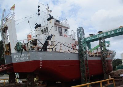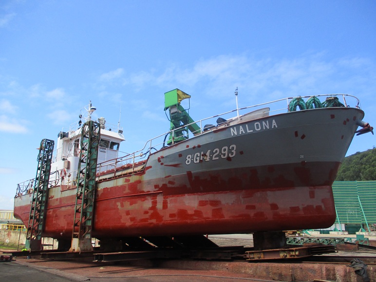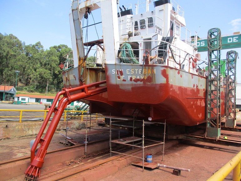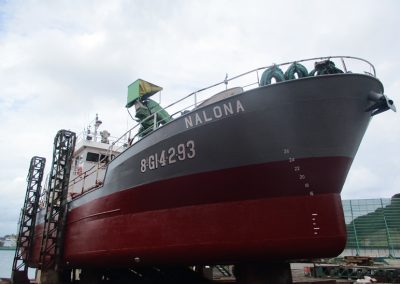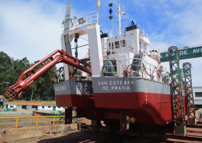Draga de 26 mts «Nalona» Reparaciones y mantenimiento, Varadas Varada para trabajos reparación y mantenimiento Lavado y pintado del casco, reparar generador, trabajos en sala de máquinas, trabajos reparación/mantenimiento equipos dragado, revisar medios de salvamento, trabajos equipos electrónicos, cambiar molinete de proa, etc