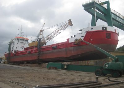Draga de 61 mts «Omvac Doce» Reparaciones y mantenimiento Varada para reparación Trabajos realizados: – Lavado del casco – Pintar algunas áreas del casco – Reparar la protección de las hélices azimutales – Desmontaje e instalación de una de las hélices después de su reparación.