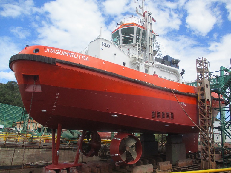 Remolcador «Joaquim Ruyra» Reparaciones y mantenimiento, Varadas Varada para trabajos de mantenimiento y reparación Lavado, chorreado y pintado del casco, trabajos de acero y soldadura, trabajos mecánicos, revisión válvulas, bombas y equipos principales, etc